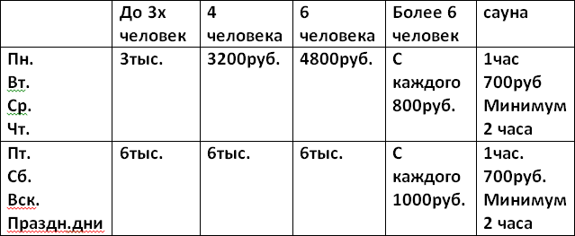 Минимум 2 часа-1400, свыше 8 человек, за каждый час доплата за каждого человека-100рублей.